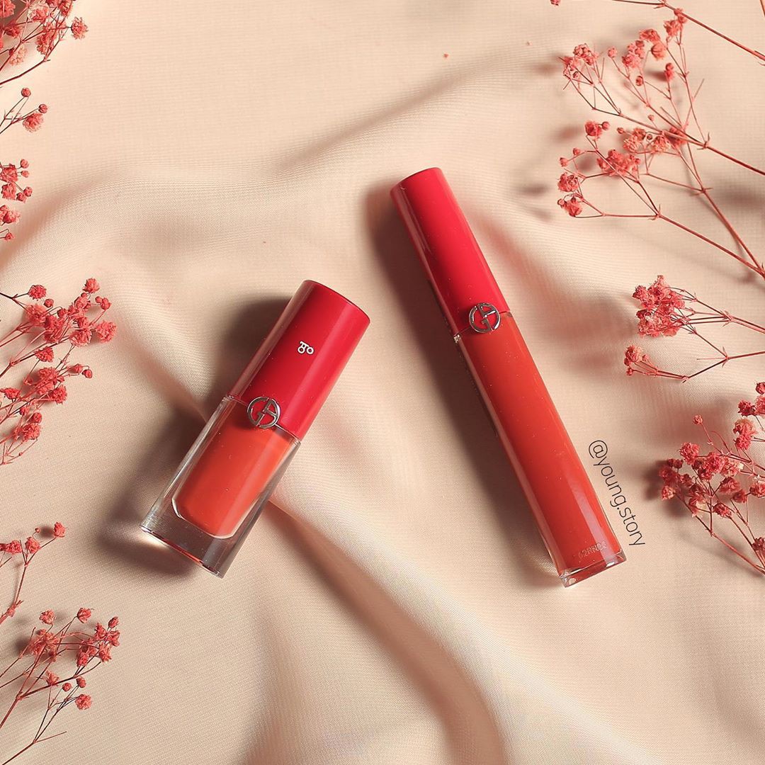 Nằm trong bộ sưu tập giới hạn mà Giorgio Armani dành riêng cho thị trường Hàn Quốc, Lip Maestro màu 205 (bên phải) đang "bỏ bùa" hết thảy các tín đồ làm đẹp châu Á vì màu son đỏ gạch siêu xinh.